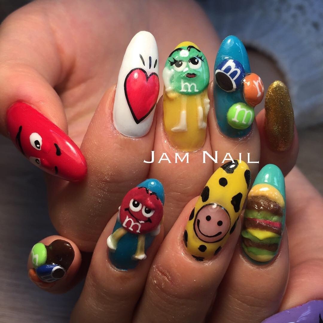 New Nail ずっとやってみてかったm Msのネイル 袋と飛び出てるチョコとmの文字は3dにしてもらった 手元見るとテンション上がる New Nail Nailstagram Nailart M M Sweets Haraj ネイル ネイルデザイン マニキュア